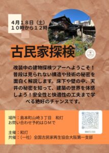 実際に工事を行っている現場で、古民家の話を聞くイベントです。